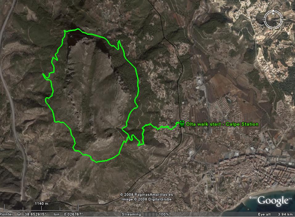 This is a circular walk around the Sierra de Olta, an impressive mountain with rocky pinnacles and encircling steep cliffs. The start, and end, of our walk will be at Calpe's railway station, some 3 miles from our hotel. I hope to get a local bus to and from the station.