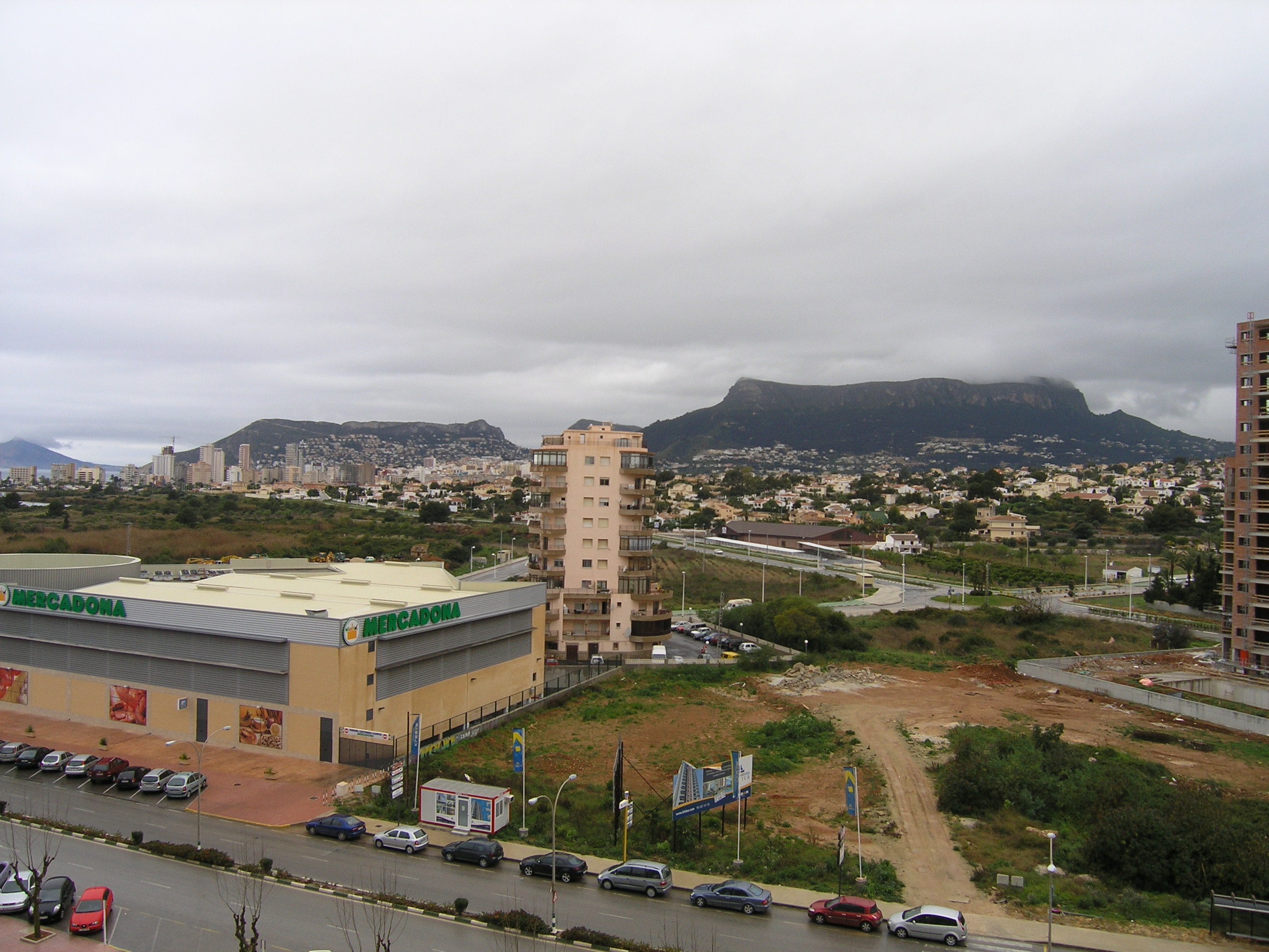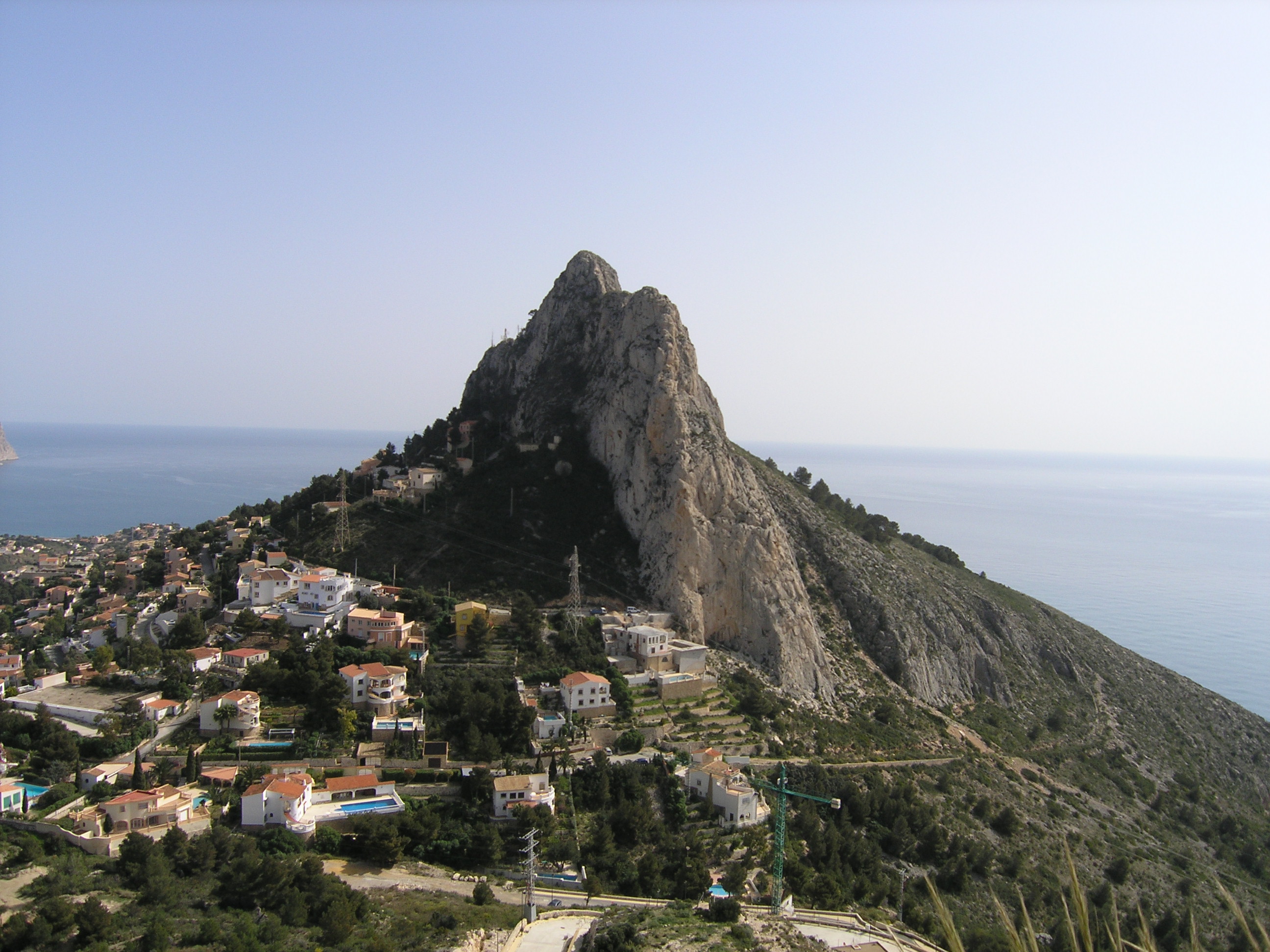 View of Peñón de Ifach This photograph predates the building of our hotel at the building site near bottom centre.
