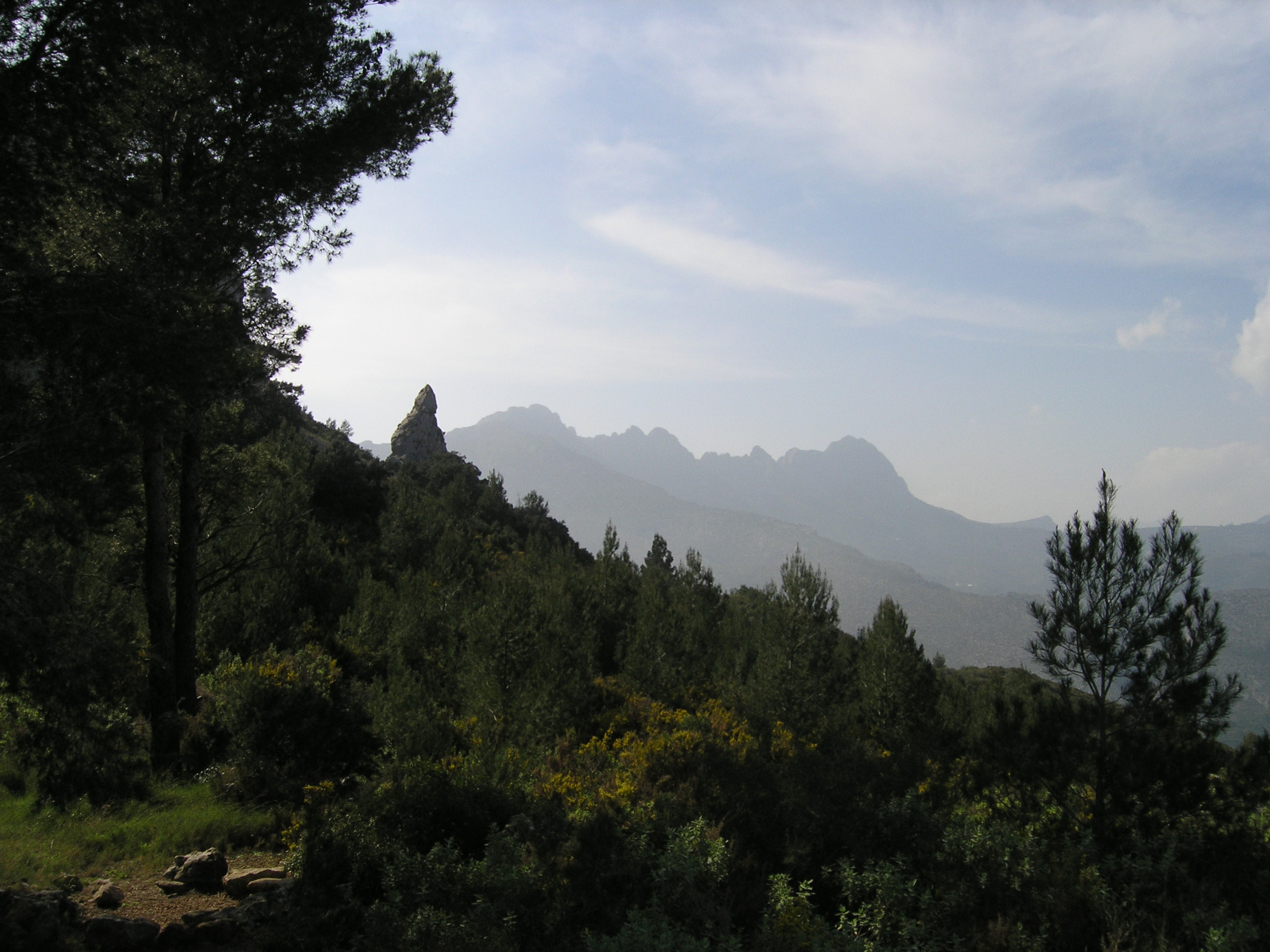 El Castallet is on top of the hill at the right hand side of this image. This view looks North-West. We will not be going to the higher peak in the centre which is on the far side of the gorge.